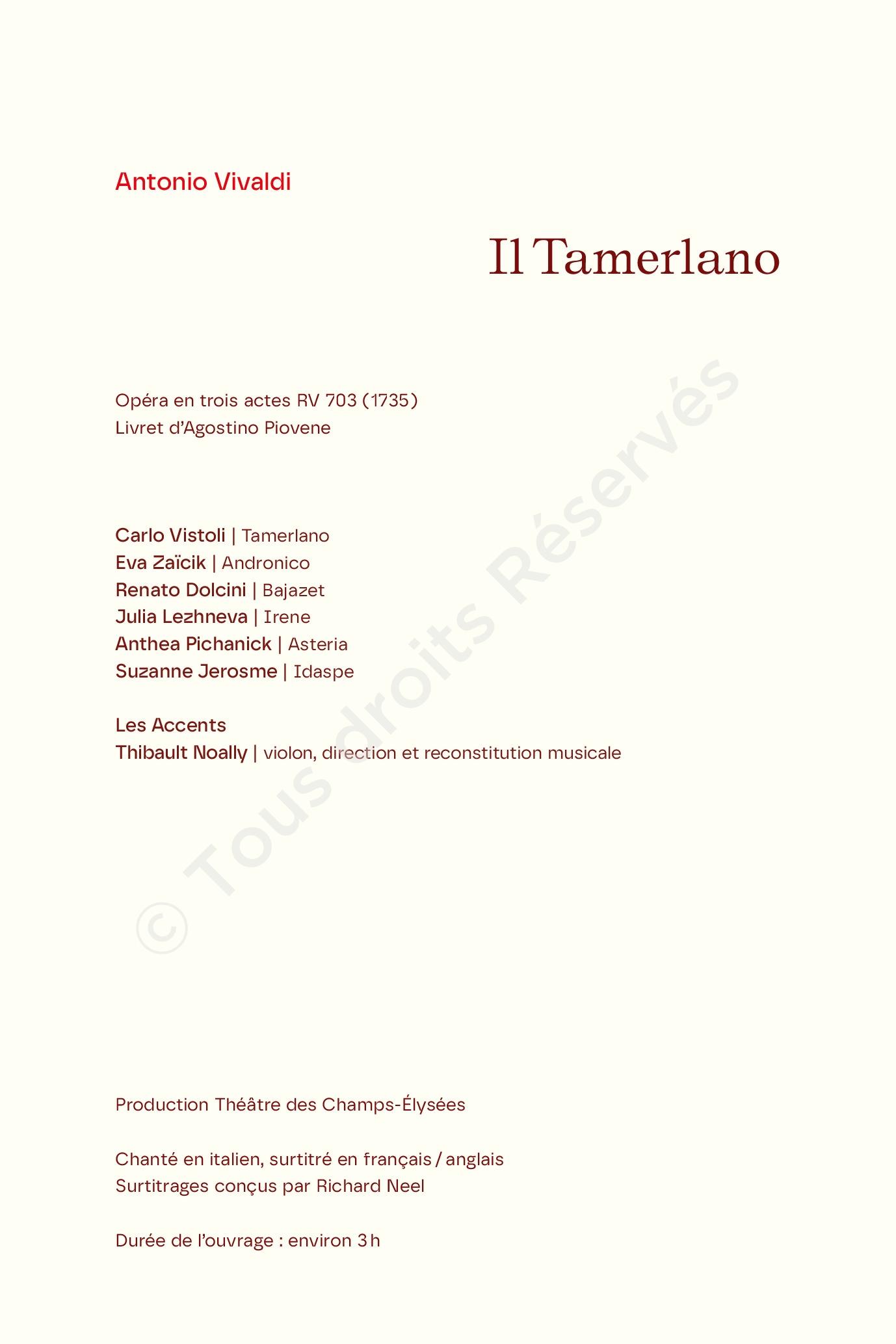 Il Tamerlano, Vivaldi