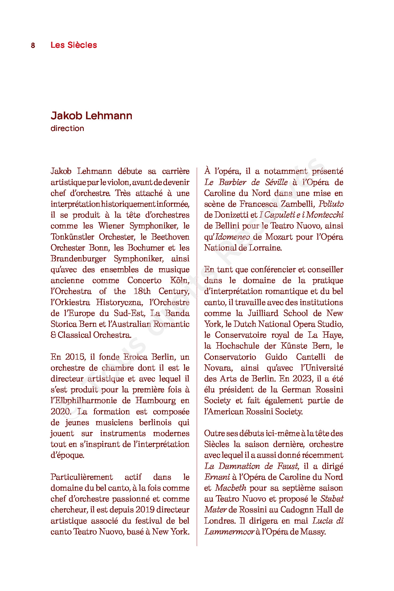 / Les Siècles, Jakob Lehmann